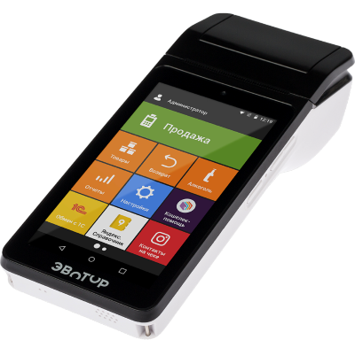«Эвотор» — это компактная онлайн-касса с неограниченными возможностями. Всё в одном маленьком корпусе: компьютер, фискальный накопитель, принтер чеков. Эвотор можно научить всему, что захотите — просто установите нужное приложение.